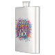 The product is a good size and came exactly as it was pictured. The lid is not attached to the flask, which could be dangerous on drunken nights... The print came out surprisingly well and looks very sharp. Would definitely recommend.