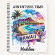 A vibrant coastal landscape showcases Hawaii's stunning beaches, featuring lush palm trees, rolling waves, and majestic mountains under a colourful sky, inviting adventure and tranquillity.