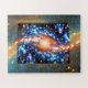 Explosive and wild retro cosmic mess in universe jigsaw puzzle