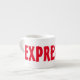 This EXPRESSO cup feature the word EXPRESSO in bold red lettering with a high angle image of a cup of expresso in place of the letter 'O'. These mugs make a strong statement ideal for coffee lovers with a need for a caffeine infusion.