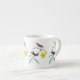 Gravure brillamment colorée de deux colibris faisant face vis-à-vis des directions sur un brin de Ludwigia, parfois un plante de parasite de nos jours dans les marais, pourtant faisant une belle conception qui couvre cette tasse de café express tout à fait bien.
