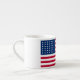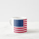Tasse en céramique de café express montrée avec une copie de drapeau des Etats-Unis. Customisez cette tasse ou l'achetez comme est.