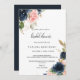 This exquisite fall floral bridal shower invitation is perfect for a tropical wedding shower. The design depicts hand-drawn pink blush, dark blue and navy whimsical flowers, inspiring elegance, class and natural beauty.
