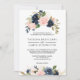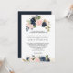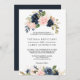 This exquisite fall floral wedding invitation is perfect for a tropical wedding. The design depicts hand-drawn pink blush, dark blue and navy whimsical flowers, inspiring elegance, class and natural beauty.