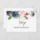 This exquisite fall floral wedding rsvp card is perfect for a tropical wedding. The design depicts hand-drawn pink blush, dark blue and navy whimsical flowers, inspiring elegance, class and natural beauty.