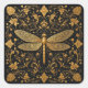 Exquisite Golden Dragonfly with Floral Art Square Sticker