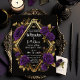 Enchanted Gothic Wedding Invitation Suite - Customizable Elegant Vintage Design with Dark and Bright Purple Florals, Wooden gold accents
