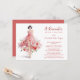 This design stands out for its sophisticated watercolor effect, bringing an artistic, light, and ethereal feel to the entire composition. The illustration features a full-body woman in an elegant model pose, with dark hair and a delicate, refined presence. She wears a pink tulle dress whose flowers seem to softly scatter in watercolor, in shades of pink, red, and white, with green leaves adding freshness and balance. The front background is white, allowing every brushstroke to be appreciated clearly, highlighting the delicacy of the tulle and the grace of the female figure. The back of the invitation is pink, providing warmth and contrast while elegantly complementing the design without interfering with the artistic details of the illustration. Every detail conveys exquisiteness, femininity, and a romantic aura, making the invitation truly artistic and refined.