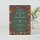 This elegant wedding invitation features a rich, floral pattern with vibrant reds and greens, creating an opulent and sophisticated look. The central oval frame showcases the text in a classic serif font, adding timeless charm to the design. Perfect for a formal celebration, this invitation exudes warmth and grace, setting the tone for a memorable event. With its customizable text area, it's ideal for couples looking to add their personal details while maintaining an air of refined elegance.