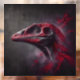 An abstract portrait showcasing the head of an extinct dinosaur. Painted with red and charcoal colours in an artistic style, this captivating artwork unfolds against a dark shady background. Witness the beauty in the mysterious echoes of the past in this very captivating piece.