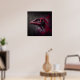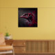 An abstract portrait showcasing the head of an extinct dinosaur. Painted with red and charcoal colours in an artistic style, this captivating artwork unfolds against a dark shady background. Witness the beauty in the mysterious echoes of the past in this very captivating piece.