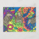 What could be more whimsical than armadillos frolicking in a folk art garden? Gray armadillos on an extra bright background of blue, orange, purple, yellow and green.