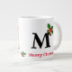 Custom personalized extra large Christmas mug with name initial and festive cat picture. Great custom Christmas gift for friends and family