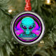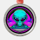 Extra Terrestrial Alien Flying a UFO Metal Ornament