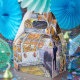 Original Painting of a Hot Dog Vendor in Manhattan by New York City, Fine Art Artist, Gaye Elise Beda