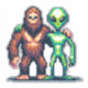 Extraterrestrial Alien Being and Bigfoot Pixel Art