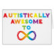 Design fait avec amour pour la Sensibilisation sur l'autisme. Les lettres arc-en-ciel forment l'expression "Autistiquement Awesome To Infinity" avec un symbole infinity.