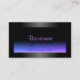 Make a lasting impression with this elegant and modern business card design featuring a black blue purple and pink colour gradient with a shimmery dark decor frame. Matching an outstanding font with mirror shadow effect.