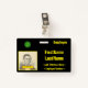 This eyecatching employee badge design features editable details such as a portrait photo, a company logo, an employee name, and a role/title. A badge like this could maybe be used to show that somebody at a business or workplace is an authorized and identified staff member. [~Z0000450]