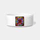 This is a heavy, durable bowl decorated with Tibbies of many colors, the perfect size for hungry/thirsty Tibs. The design is interesting and printing clear.