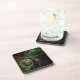Eye to Eye Modern Fractal Green Gold Abstract Art Coaster