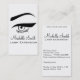 Business card with a drawing of eye with long lashes and eyebrows of female face in white and black. Perfect for your company promotion. Suitable for make-up artists, eyelash extension services, lash tinting and waxing services, brow tinting services, henna tattoos, permanent makeup, estheticians, beauticians, stylists, spa salon, hair and beauty salon or model agency. Customizable.