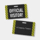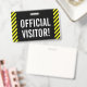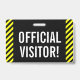 This eyecatching badge design features the message "OFFICIAL VISITOR!". It also features yellow and black coloured caution stripes. The back features a customizable company name or other custom message. [~Z0000286]