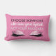 Girly pink, black and white, inspirational typography pillow for her- Inspirational quote reads 'Choose Someone Who Ruins Your Lipstick, Not Your Mascara' in black and white typography design. A pair of faux pink, glam glitter eyelids with tons of mascara or fake eyelash extensions adorns the bottom. On pretty solid pink background, which may be changed to any colour you wish on either side to match your decor. Identical on back. Note: All images are printed. Not actual glitter. Glam, inspirational gift for teen girls. Cute decor for a girls bedroom, girly dorm decor or fun gift for girls. Unique business decor for a beauty salon or spa as well, or gift for a makeup artist, or even for a friend going through a breakup or divorce. We have coordinating makeup themed glamour pillows in our Zazzle.com/angela65 shop, as well as more girly gifts. Mix and match or collect them all!