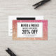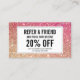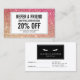 Coordinates with the Eyelashes with Red/Bronze Glitter Business Card Template by 1201AM. Update the promotion text for your desired offering. Generate more sales and visits by encouraging your customers to refer their friends for a discounted service or free product. Great for lash extension salons, lash bars, makeup artists and more. © 1201AM CREATIVE