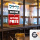 Bold easy to read store window cling sale sign for an Optical or Eyeglass store with sign that says buy one get one free and has an image of eyewear on the sign. Display it on your front door, your store window to promote business. Created as an online template you can customize the way you want it to look or use it as shown.