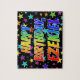 This vibrant, fun, birthday-themed jigsaw puzzle design features the message "HAPPY BIRTHDAY, EZEKIEL" with the characters having a colourful rainbow spectrum inspired gradient pattern, in addition to an exciting star field background pattern. A colourful puzzle like this might be a fun way to send birthday greetings to somebody named Ezekiel. [~Z0000468]