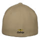 Fits well due to elastic edging, not adjustable. Good qualty material. Good quality embroidering. Subtle lettering (white on beige) just as my wife likes.