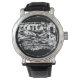 This is a Men's Vintage Black Leather Strap Watch eWatch Watch of F-14 Tomcat. The F-14 Tomcat is a supersonic, twin-engine, two-seat, variable-sweep wing fighter aircraft. The F-14 was the first of the American teen-series fighters which were designed incorporating the experience of air combat against MiG fighters during the Vietnam War.
