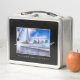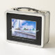 This is a standard metal lunchbox that appears to work just fine. We designed this box ourselves with an uploaded photo and custom text on the front and back. It looks absolutely beautiful except the front of the lunchbox is not centered like it shows in the photo. The print borders don't align with the inset flat part of the box where the preview photo online showed it perfectly centered in there. The back looks nice and centered though.