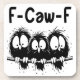 A humorous black-and-white graphic design showcases three black bird silhouettes perched on a wire, each with exaggerated big eyes. The handwritten black text humorously reads: "F-Caw-F." This quirky design is available on various products, making it a perfect gift for bird enthusiasts and fans of sarcastic humor alike.