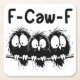 A humorous black-and-white graphic design showcases three black bird silhouettes perched on a wire, each with exaggerated big eyes. The handwritten black text humorously reads: "F-Caw-F." This quirky design is available on various products, making it a perfect gift for bird enthusiasts and fans of sarcastic humor alike.