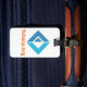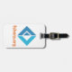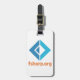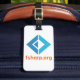 A luggage tag showing the F# Software Foundation logo for F# on the front, and the logo textured in orange on the back.