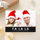 Fa La La Black Modern Christmas Photo Holiday Card. Send customizable and personalized holiday greetings to friends, colleagues and family in simple, chic, elegant and modern photo design festive, natural minimalist style cards! Below the calligraphy features your custom greeting message in modern typography.