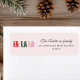 Add a festive touch to your holiday cards and gifts with these Fa La La personalized Christmas return address labels. Designed in a soft pink background with playful red and green lettering, these labels bring both cheer and style to your seasonal mailings. Customize with your family name and address for a personal holiday touch. Perfect for Christmas cards, party invitations, and gift packages. A charming and practical way to spread joy this holiday season!