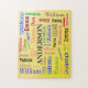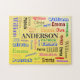 Editable Family Name Word Cloud. Space for one FAMILY NAME and four first names. The fonts are various and the background is a yellow citrus gradient.