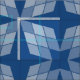 Diamond shapes create a kaleidoscope pattern of four points, such as created in pieced quilting. Diamonds consist of three filtering values, to create pattern in four shades of your chosen background colour (defaults to a medium blue). The four "petals" intersect to create two sizes of four pointed stars in the negative space.