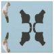 Images of two cats are replicated in mirrored tile effect. Black cat connects to itself at the tail, forming an "X". Multicolored cat connects at head and back, to outline a diamond shape. Medium blue background may be customized.