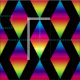 Graphic image of diamond shape in rainbow striations is repeated multiple times over the product. The coloured diamonds are spaced on black background. Diamonds are colours of the rainbow from blue at the top, through purple, red, orange, yellow, and green.