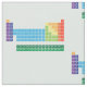 Periodic table Fabric has a repeated design featuring periodic table of the elements, with each element group marked in rainbow colours.