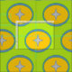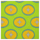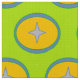 The green star circle pattern fabric with star in orange and blue circle is ready to become part of your next sewing project.