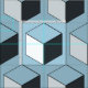 Choose your background colour (defaults to light blue). The 3-D motif of a tilted bloc, with one side white, one black, and top the background colour. Blocks are aligned in staggered lines with space between each.