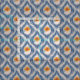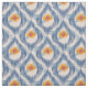 Fabric with vintage blue ikat pattern. Fabric with pattern in Boho style. Abstract peacock eyes pattern