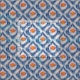 Fabric with vintage blue ikat pattern. Fabric with pattern in Boho style. Abstract peacock eyes pattern