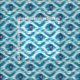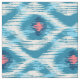 Fabric with vintage blue ikat pattern. Fabric with pattern in Boho style. Abstract peacock eyes pattern