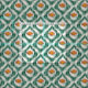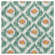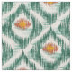 Fabric with vintage green ikat pattern. Fabric with pattern in Boho style. Abstract peacock feathers pattern in Boho Soho.